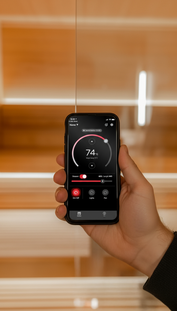 Our revolutionary smart saunas connect seamlessly to your smartphone, giving you complete control over your wellness experience. Heat, lighting, and wellness programs - all at your fingertips.