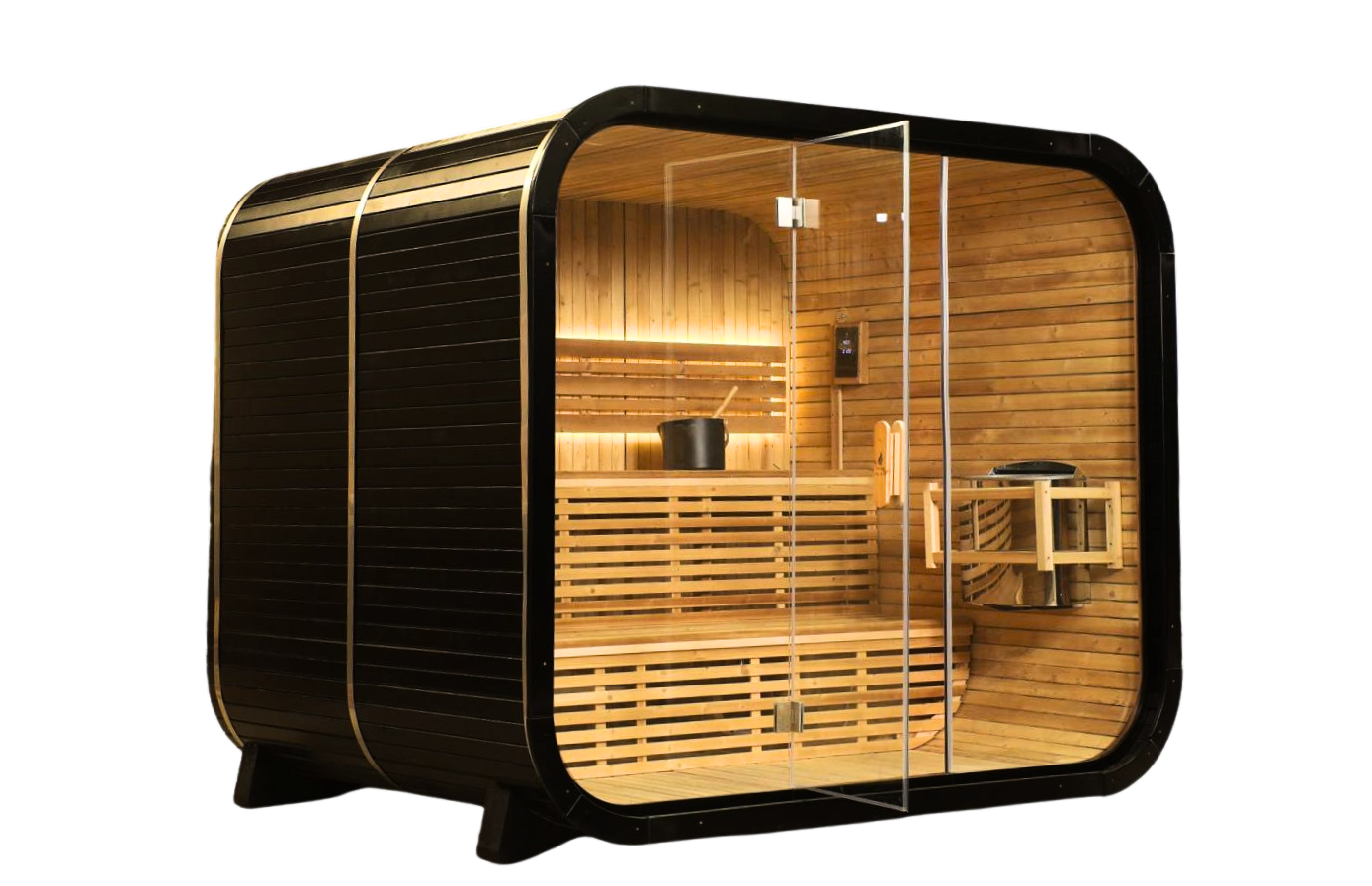 Our revolutionary smart saunas connect seamlessly to your smartphone, giving you complete control over your wellness experience. Heat, lighting, and wellness programs - all at your fingertips.