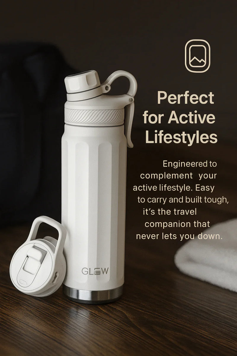 Hydration should always meet you at the perfect temperature. With advanced double wall vacuum insulation, the Glow Water Bottle keeps your drinks icy cold for a full 24 hours or soothingly hot for 12. Whether you are stepping out of the sauna, heading into the gym, or carrying it through a busy day, every sip feels exactly the way it should. No lukewarm compromises, just consistent refreshment.